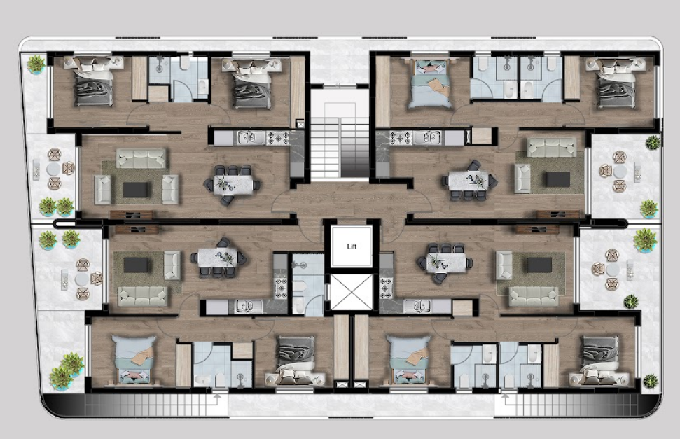This contemporary 2-bedroom apartment is situated in a brand new building in Paralimni, just 5 km from the sea. It’s conveniently close to a range of amenities, including supermarkets, shops, cafes, and restaurants. The development consists of two blocks, offering 1- and 2-bedroom apartments. This particular unit features 2 bedrooms, 2 bathrooms, and an open-plan kitchen and living area.