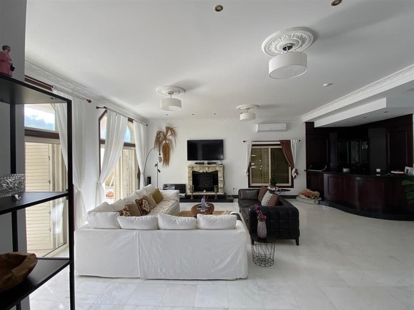 It consists of 6 bedrooms with en-suite bathrooms, a large living and dining room, two kitchens and a maid’s room.