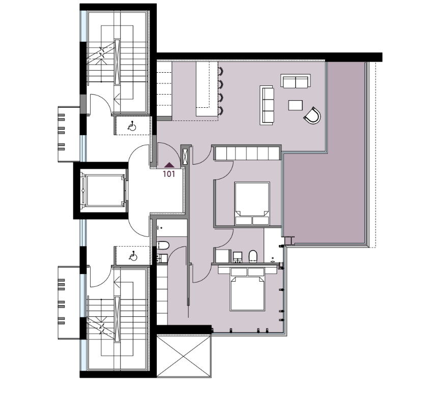 Each apartment is thoughtfully designed, showcasing refined elegance and attention to detail at every level. The building also includes a secure yet welcoming lobby and private off-street parking.