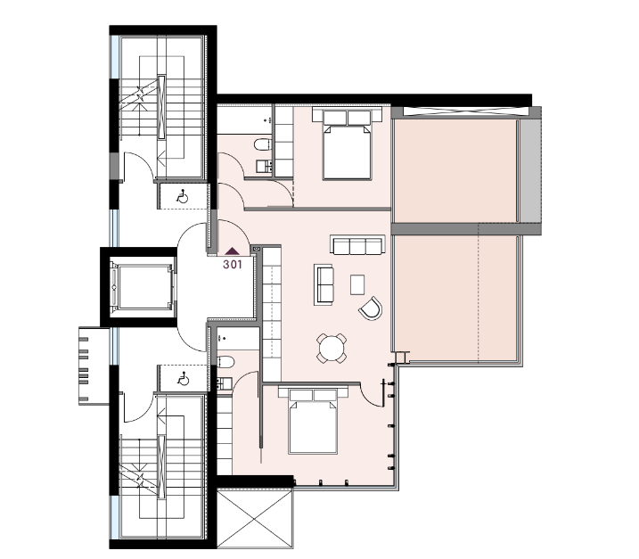 Each apartment is thoughtfully designed, showcasing refined elegance and attention to detail at every level. The building also includes a secure yet welcoming lobby and private off-street parking.