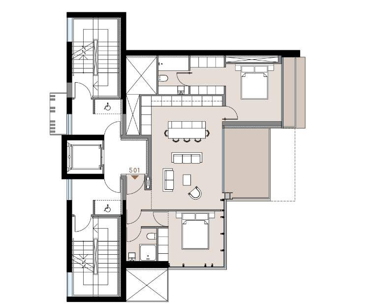 Each apartment is thoughtfully designed, showcasing refined elegance and attention to detail at every level. The building also includes a secure yet welcoming lobby and private off-street parking.