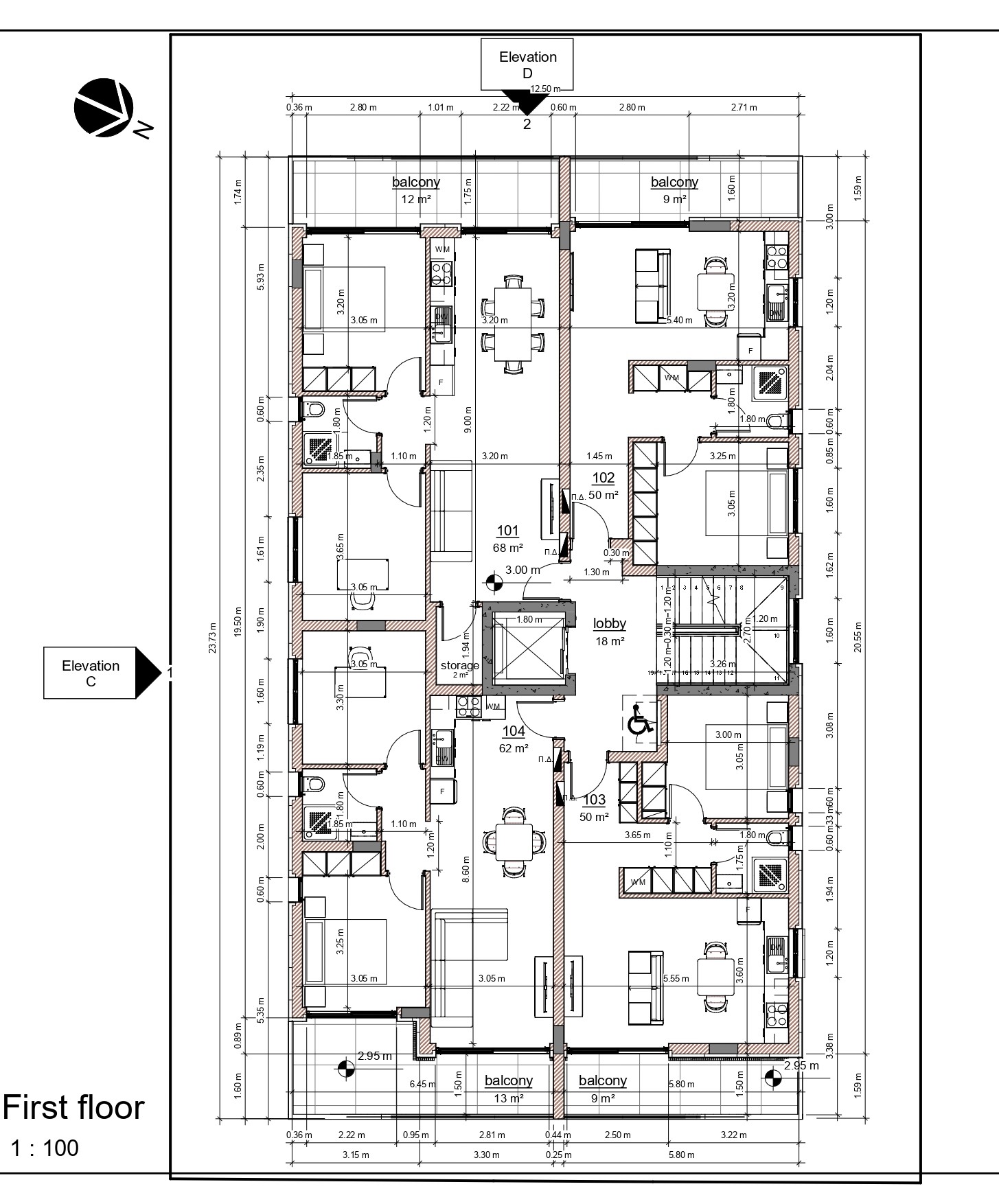This project is located in Vergia, Larnaca, close to all amenities including supermarkets, shops, and cafés, and just 5 km from Metropolis Mall. The complex features 2 floors, and the apartment comprises 1 bedroom, 1 bathroom, a covered veranda, and an office space.
