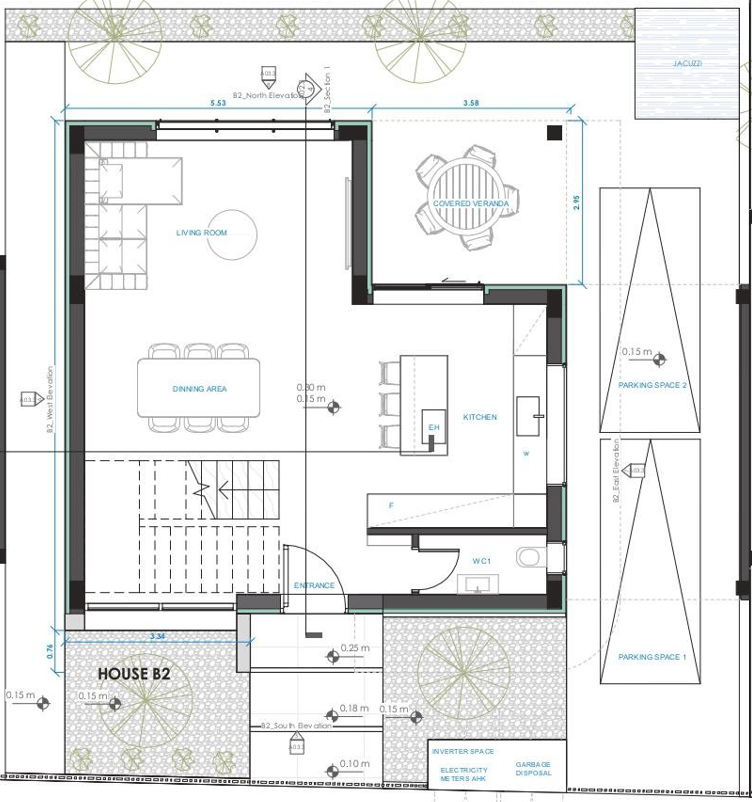 This three-bedroom house is located in the Livadia area of Larnaca, providing convenient access to a wide range of nearby amenities. It is part of the contemporary development of six exclusive houses. The property features three bedrooms, three bathrooms, a covered veranda, and a private garden.