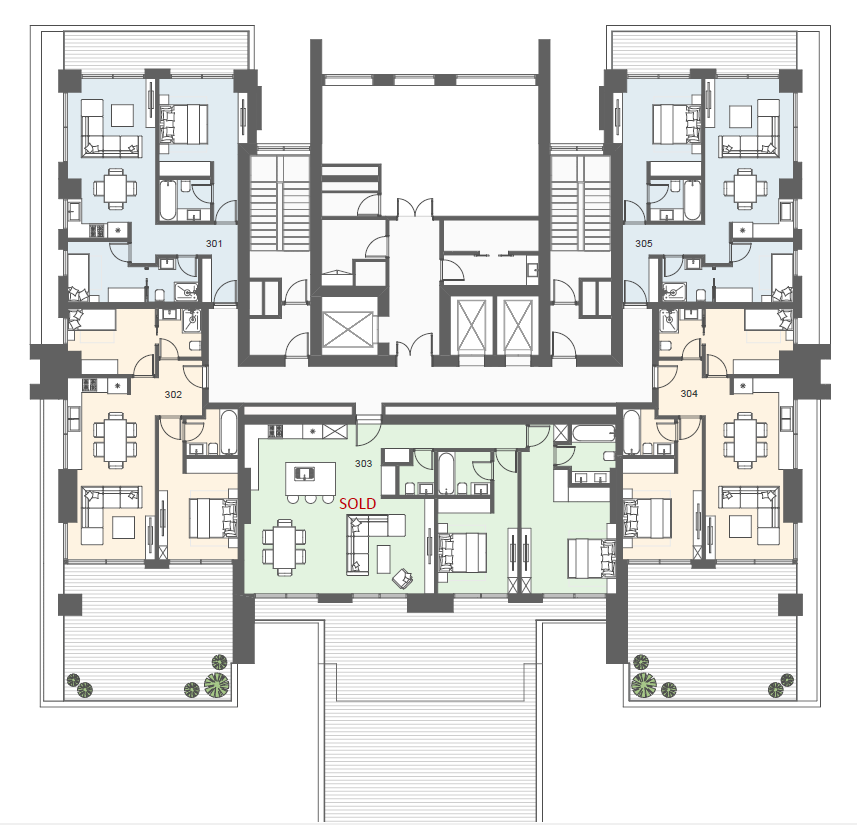 The building features a sophisticated lobby with reception and concierge services, as well as an IT room, cigar lounge, and laundry area. The complex also offers spacious outdoor amenities, such as a landscaped garden, swimming pool, and tennis court.