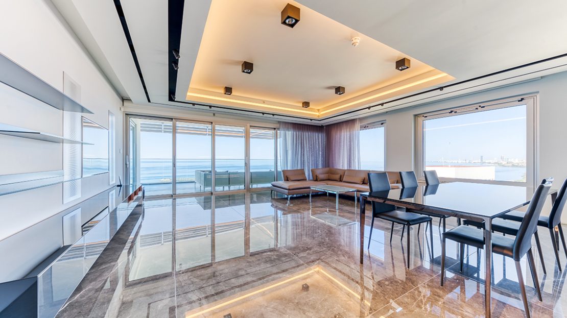 Situated on the 8th floor, the apartment boasts breathtaking panoramic views of the sea and Limassol Bay. Interiors feature a richly styled neutral color palette, creating a warm and inviting atmosphere. Exclusive amenities include a modern eco-gym, tennis court, spa and a communal swimming pool.