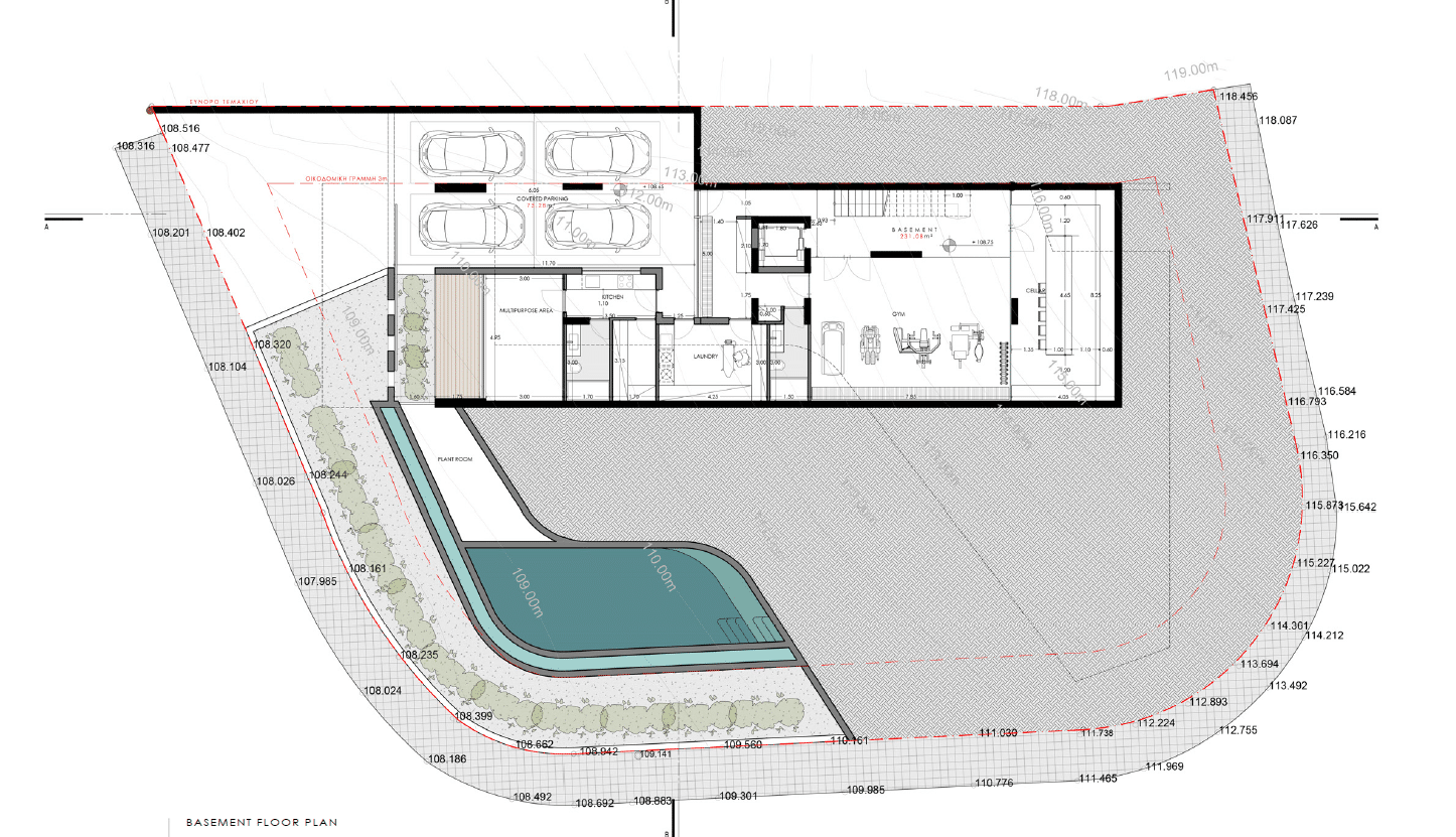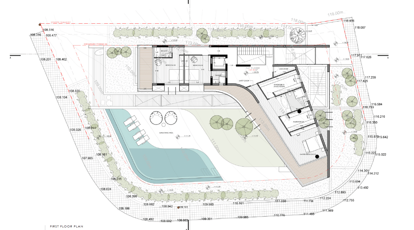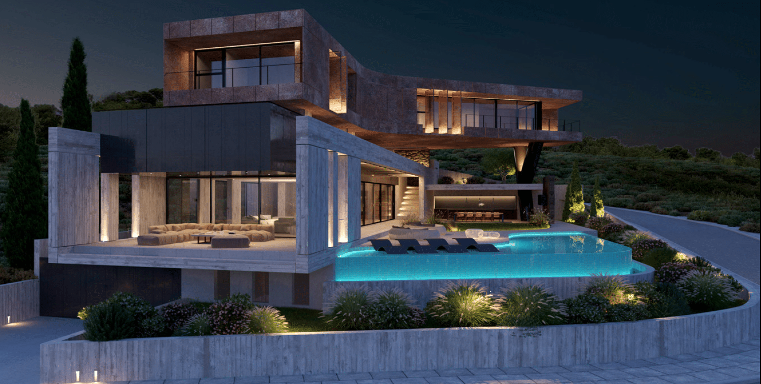 This bespoke villa in Germasogeia, Limassol, is a stunning architectural masterpiece spread across four thoughtfully designed floors. Its unique geometry maximizes unobstructed views of the city coastline while adapting to the challenges of the surrounding landscape. The ground floor features an open-plan living and dining area, a modern kitchen, and both indoor and outdoor fireplaces. It also includes a guest WC, a lift, and a staircase leading to a spectacular outdoor space that boasts a BBQ area, multiple outdoor living and dining areas, a swimming pool with a sun shelf, and beautifully landscaped garden areas.