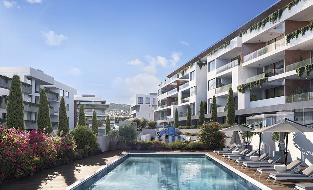 The complex located in a quiet valley of Germasogeia, surrounded by hills and olive trees, offer an affordable city living and consist of 4 blocks with their own unique design and features. All the apartments are designed as a perfect investment option for rental business and for a comfortable city life. Residents of the project will enjoy spacious covered verandas facing south, a private garden with 20 m communal swimming pool and kids playground, the top floors – breathtaking sea views. The surrounding neighbourhood is rapidly expanding new residential area within a close proximity to the Foley’s private school, kindergartens, hospitals, shopping, sport and other facilities.