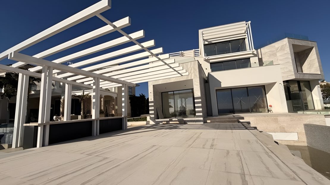 Designed for luxury living, it offers indoor and outdoor swimming pools, a spa area, a fully equipped chef’s kitchen, a bar/play area, home cinema, roof garden, elevator, laundry, storage and plant rooms, kava area, underfloor and solar heating, marble or granite flooring, granite kitchen tops, and high-end fittings throughout, combining elegance, comfort, and functionality for the ultimate sophisticated lifestyle by the sea.