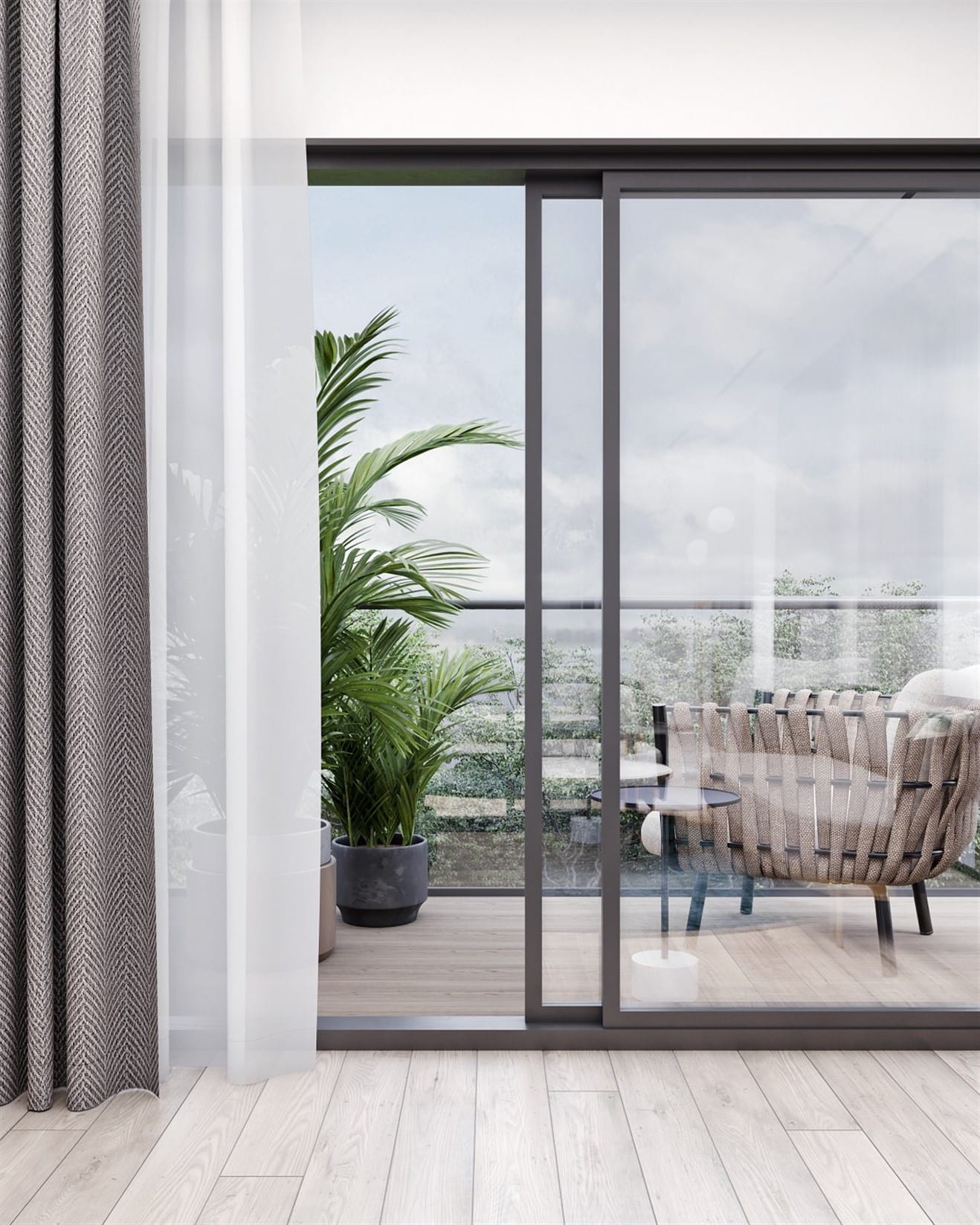 - All external windows are made of colored aluminum “Alumil” serial S350