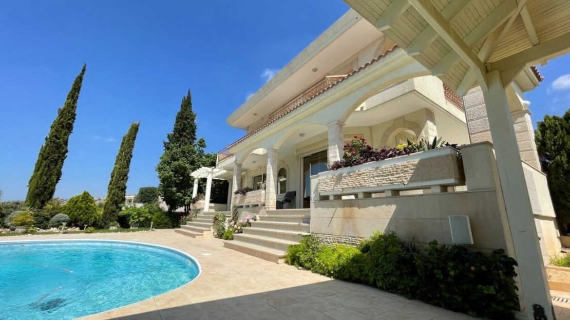 The 5-bedroom villa with spectacular views of the mountains, and sea, and the city is located in the most prestigious area of Limassol, on one of the hills of Agios Tychonas.
