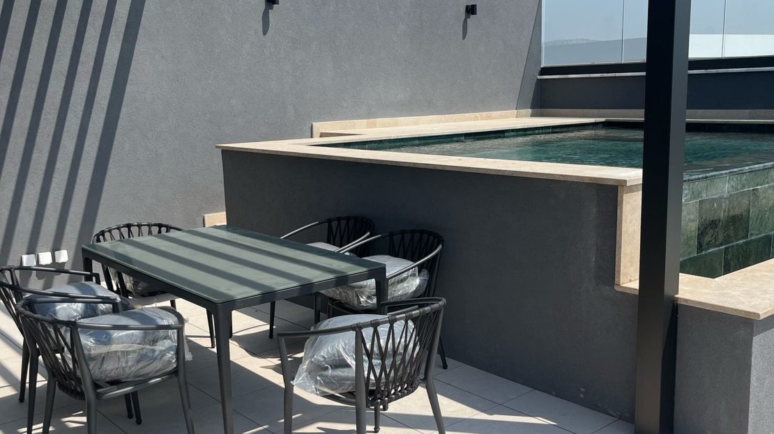This luxurious 4-bedroom penthouse is located in a modern complex in the quiet residential neighborhood of Germasogeia, Limassol, close to all essential amenities. Spread over two levels, it features 3 bedrooms and 3 bathrooms on the first level and 1 bedroom on the second. The rooftop offers a private swimming pool and a BBQ area.