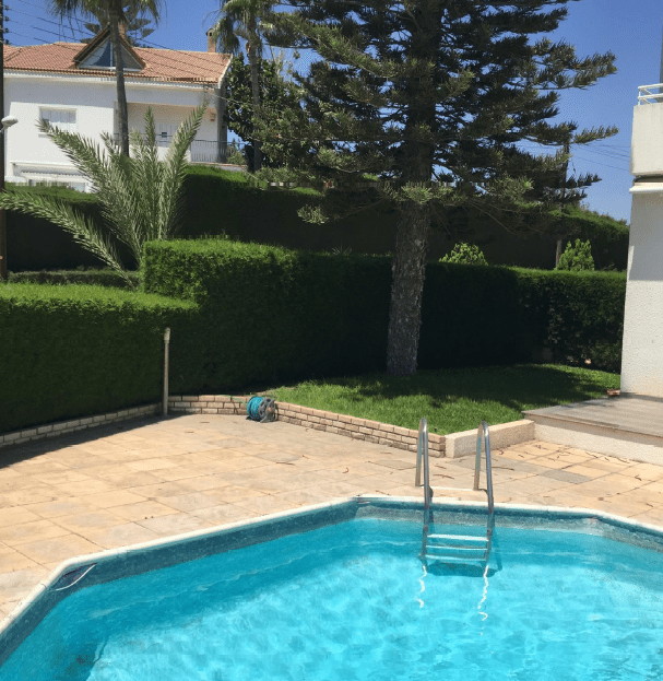On the outside there is a swimming pool 5 X 10 m and a fenced garden – opening with electric gates – with grass and mature trees.