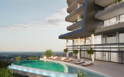 This luxurious 4-bedroom penthouse is situated in a prestigious residential building in Potamos Germasogeia, Limassol, just 300 meters from the sea and within walking distance to Limassol’s vibrant tourist area, top leisure spots, shops, banks, pharmacies, and restaurants. Spanning the 5th and 6th floors, the property features 4 bedrooms, three on the main level and one on the rooftop, along with a private swimming pool and a beautifully designed roof garden offering stunning mountain views.