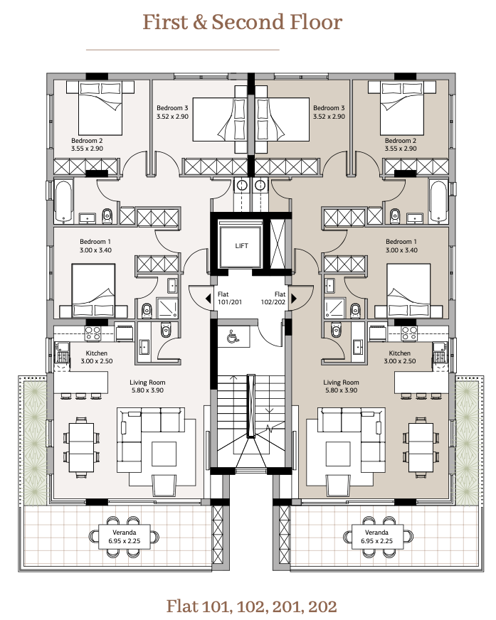 Created with careful consideration for modern and functional living, the residence presents six three-bedroom apartments, of which two penthouses with roof gardens, perfect for those embracing a sun-seeking urban lifestyle. Combining concrete and high-pressure laminate (HPL) panels, the exterior design captures a timeless appeal, designed to elevate your living experience in the heart of Limassol’s most sophisticated residential area.