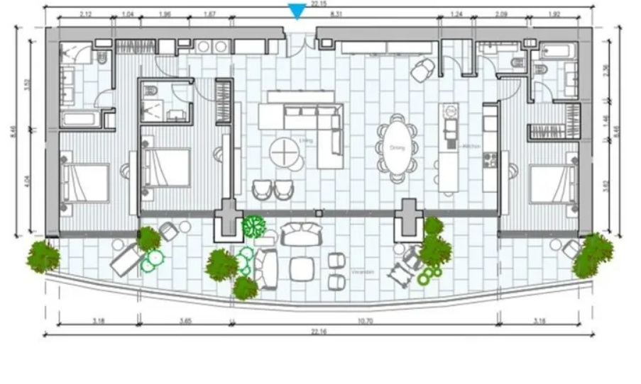 The project features a luxury spa, beautifully landscaped gardens, a children’s playground, underground parking, an impressive 50-meter infinity pool, as well as dedicated kids’ pools. Additional amenities include a sea-facing gym, a resident’s lobby, a bistro, and 24-hour concierge services. The apartment itself is stylishly designed and finished with materials and interiors created by renowned designers.