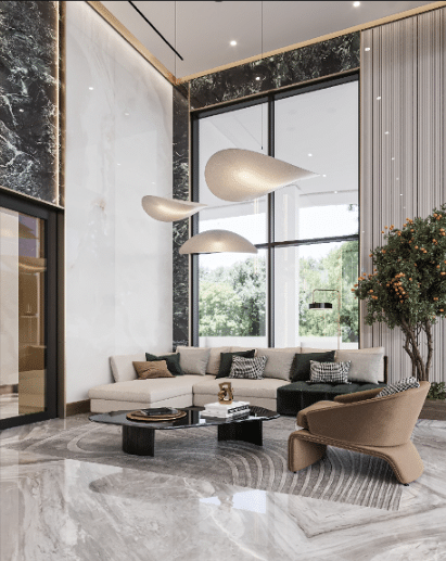 - Floor-to-ceiling panoramic windows with sliding doors to the veranda