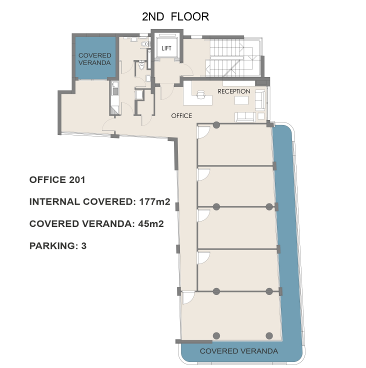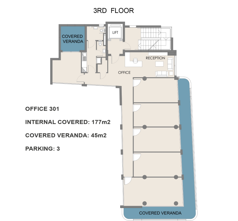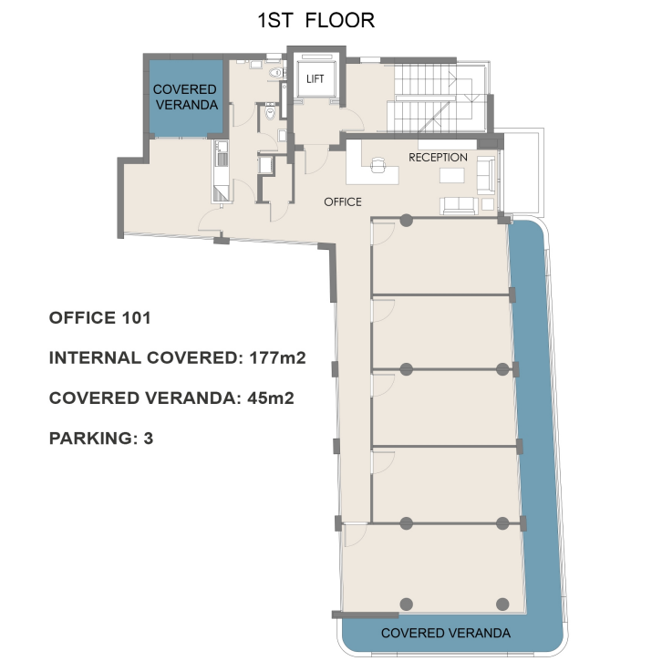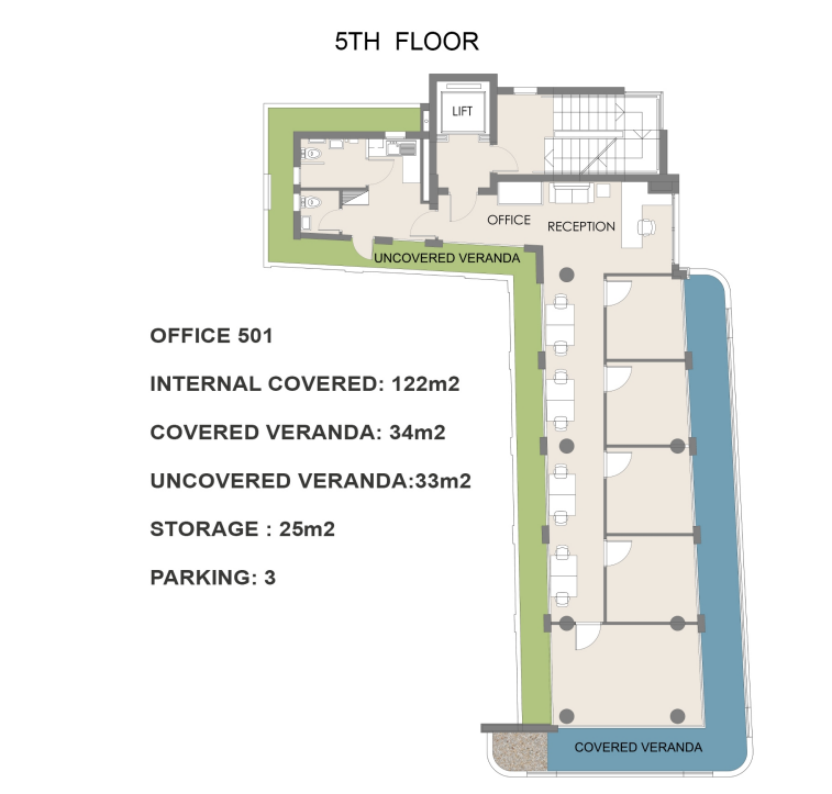 This business center is situated in the Agios Ioannis area of Limassol, just steps from Limassol Marina and the city’s primary business avenues. Located in one of Limassol’s most vibrant commercial districts, it offers excellent proximity to essential services, financial institutions, and lifestyle amenities. The building comprises five above-ground floors and a fully equipped basement, featuring a welcoming reception area.