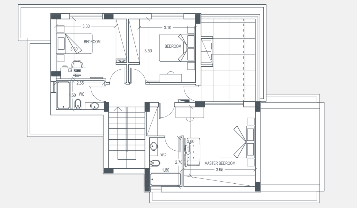 This modern 4-bedroom house is located in the prestigious area of Agios Tychonas and is part of a complex featuring a communal swimming pool, sauna, and children’s playground. The ground floor includes a dining area, living room, kitchen, bathroom, guest bedroom, and covered veranda, while the first floor offers a master bedroom, two additional bedrooms, en-suite bathroom, another bathroom, and a covered veranda. The property also boasts a landscaped garden.