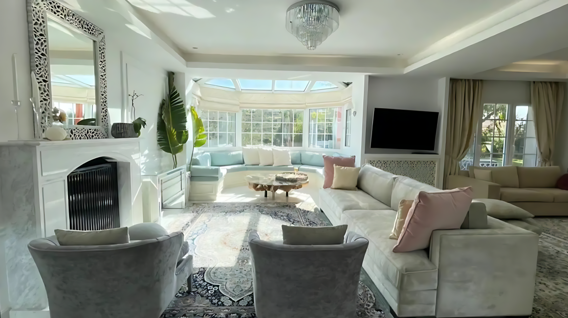 This beautiful fully furnished house is located in a quiet, green area of Pareklisia, Limassol, surrounded by trees and gardens. It features 5 bedrooms, 4 bathrooms, and two covered verandas, with hand-made French parquet flooring in the bedrooms. The property includes a steam room (hamam), maid’s room with bathroom, office and multi-use room, a fully equipped kitchen, and a laundry room. Outdoors, it offers a landscaped garden and a private swimming pool.
