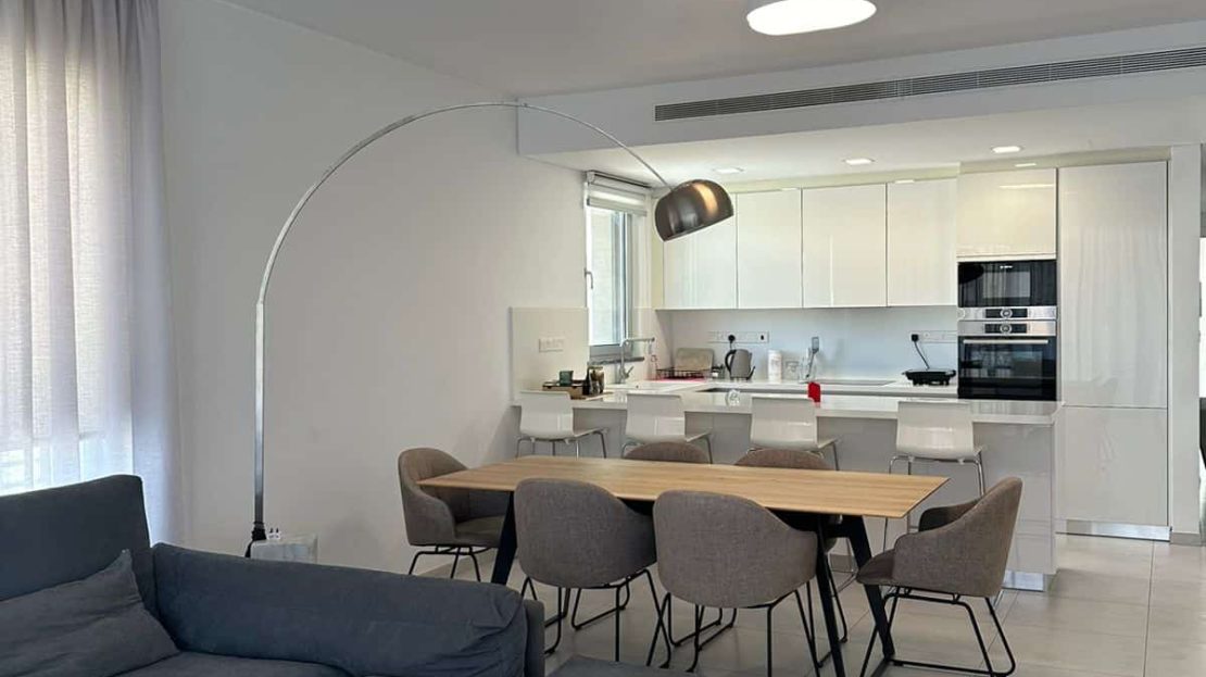 This modern three-bedroom apartment is located in the Petrou & Pavlou area of Limassol, in the heart of the city and within walking distance of essential amenities such as shops, supermarkets, cafes, and banks. It is part of a contemporary residential building.
