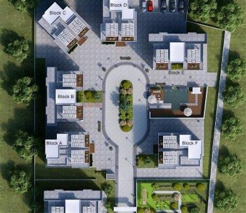 Surrounded with gardens, park, playground, private road with roundabout and a big communal swimming pool