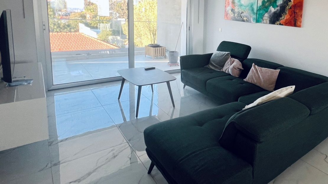 This modern 2-bedroom penthouse in the quiet yet central area of Mesa Geitonia, Limassol, close to cafes, supermarkets, pharmacies, and bakeries. It features an open-plan living area with a fully equipped kitchen, granite countertops, solid wood cabinets, and an island bar.