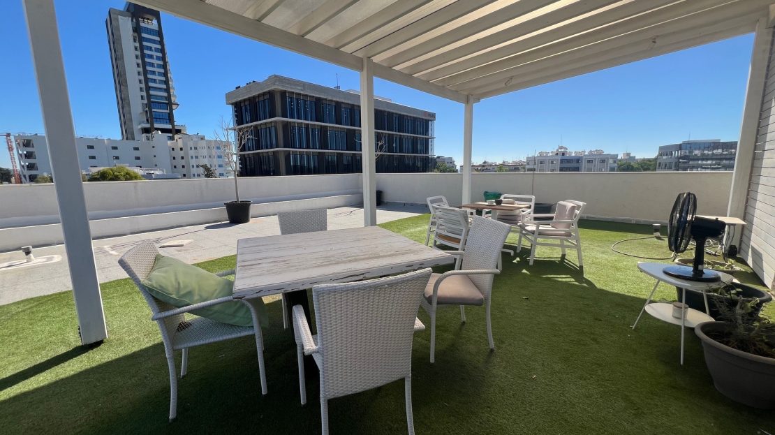 The office is semi-furnished and equipped with an air conditioning system, laminate raised flooring, double-glazed windows, provision for an alarm system, and three uncovered parking spaces. There is access to a common roof garden.