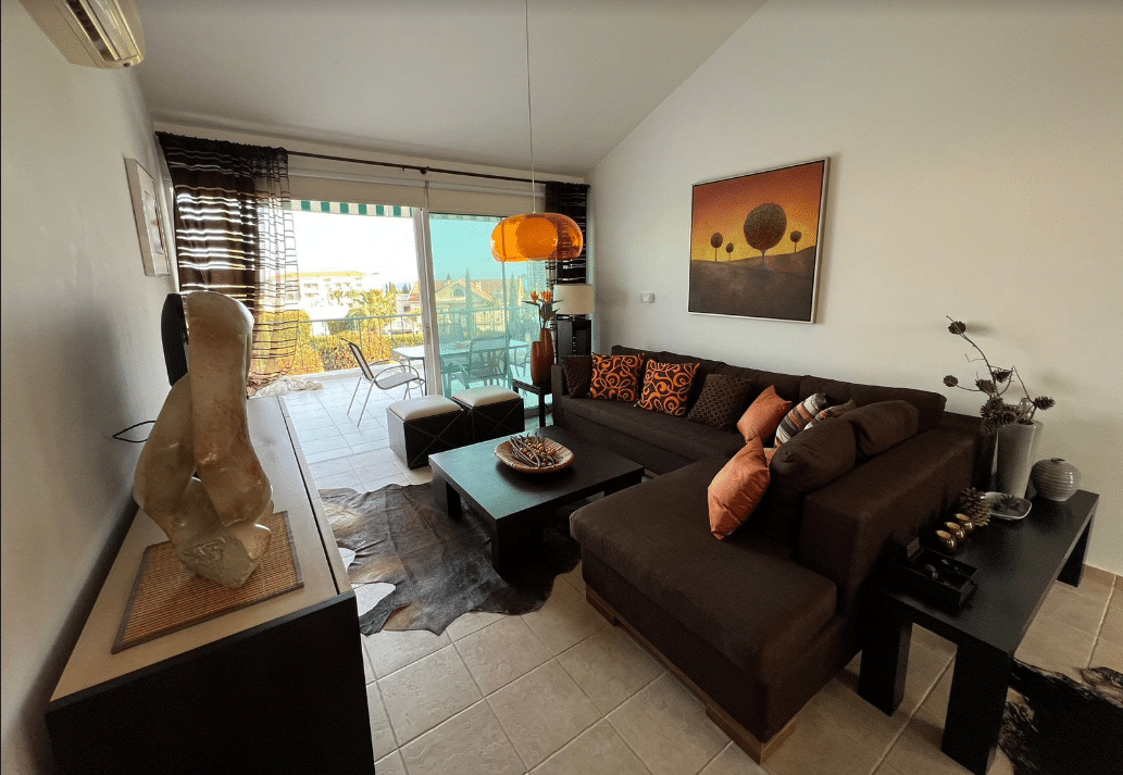 This one bedroom apartment located in Agios Tychonas, Limassol. The gated complex across the road from the sea. The complex consists of small blocks with apartments, built in a semicircle, deployed towards the sea.