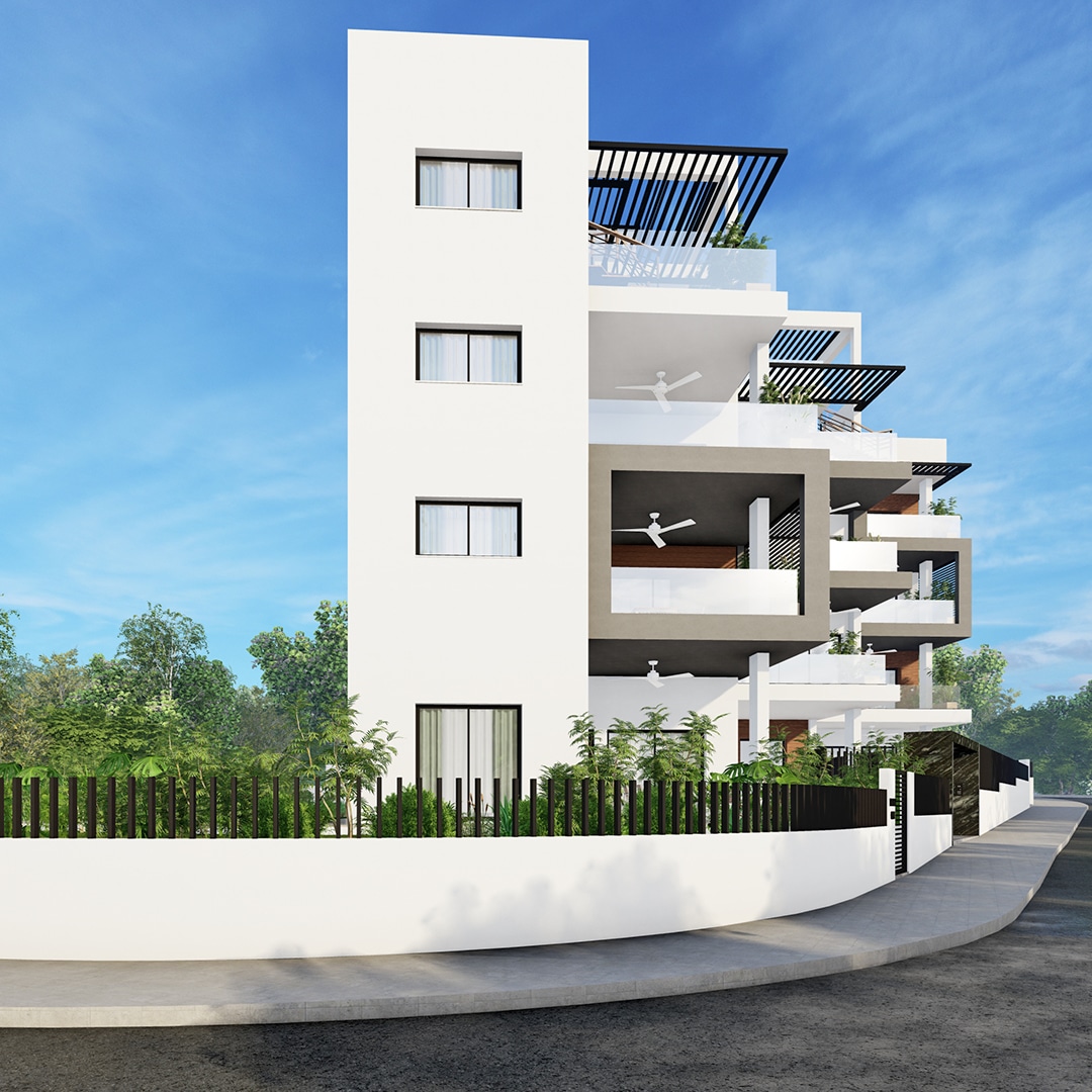 The development is located in Germasogeia area overlooking Limassol’s coastline. It consists of 10 luxurious modern apartments, each with covered parking out of which two flats (1 two-bed and 1 three-bed) are situated on the ground floor with their own private gardens and covered parking.