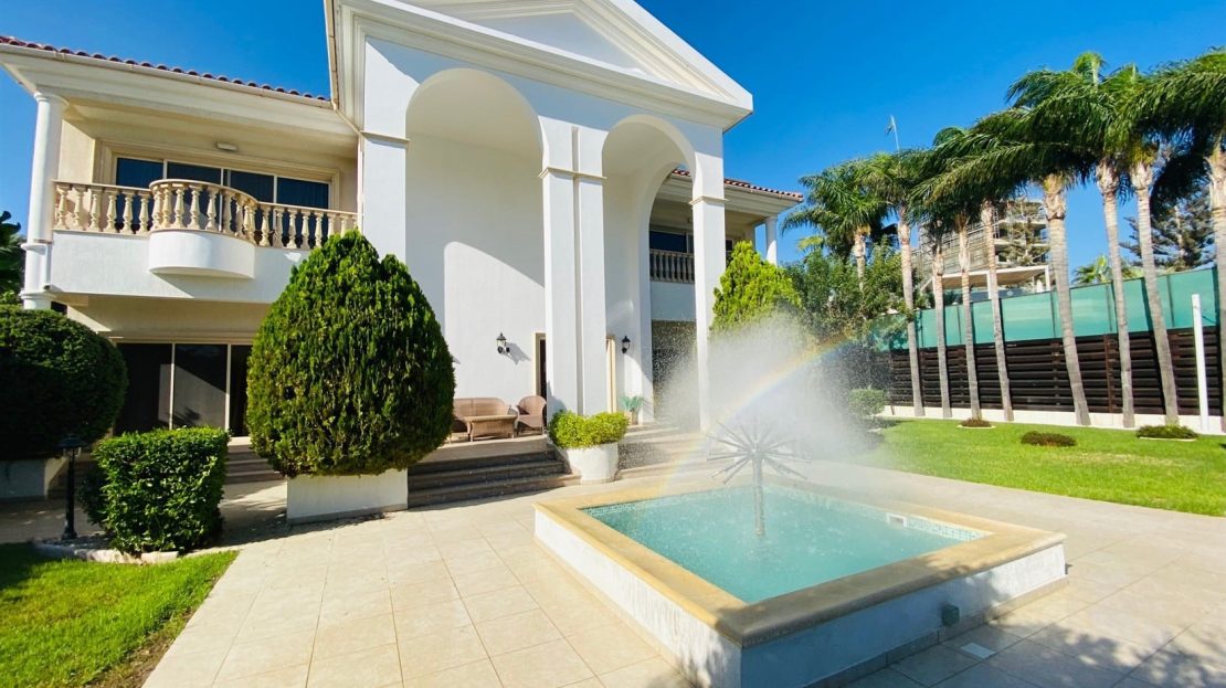 The villa is fully furnished and equipped, with a central air conditioning system (Daikin), underfloor heating (water), double-glazed windows, expensive Versace tiles, solar panels for hot water and electricity, an alarm system, an intercom, and water pressure system. Outside of the villa, there is a private swimming pool with a jacuzzi, pool bar, decorative fountain, beautiful mature garden with fruit trees, covered sitting area with BBQ, uncovered parking, private direct passage to the beach, and electric gates with remote control.