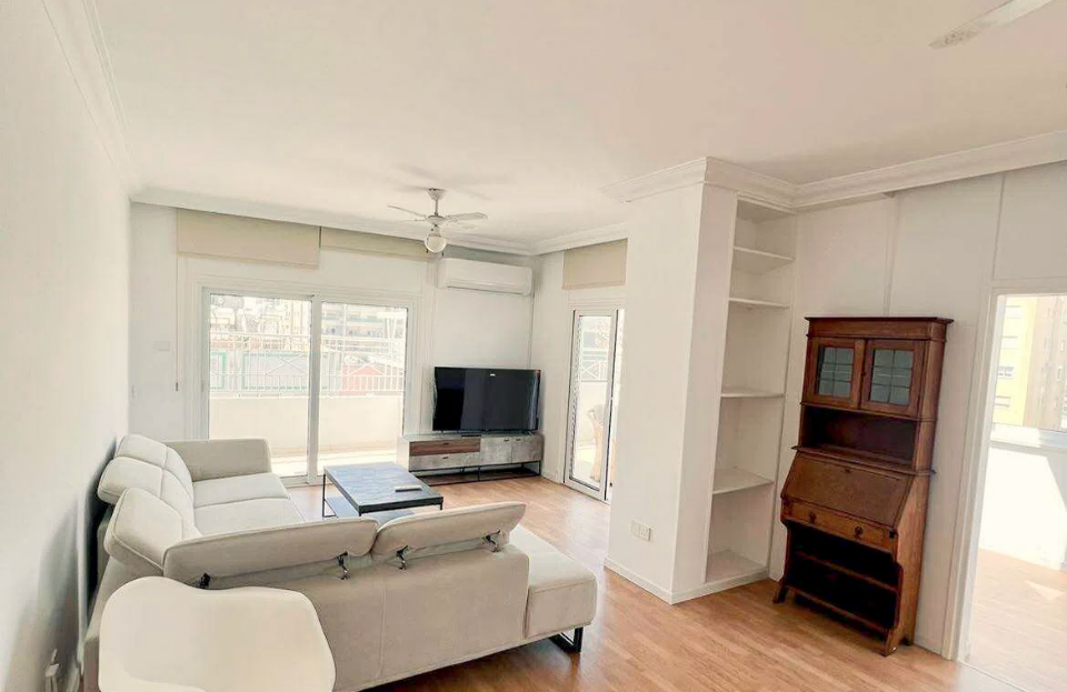 This fully furnished 3-bedroom penthouse in Neapolis, Limassol, is conveniently located close to cafes, shops, supermarkets, and all amenities. It features 3 bedrooms, 2 bathrooms, and 2 spacious verandas.