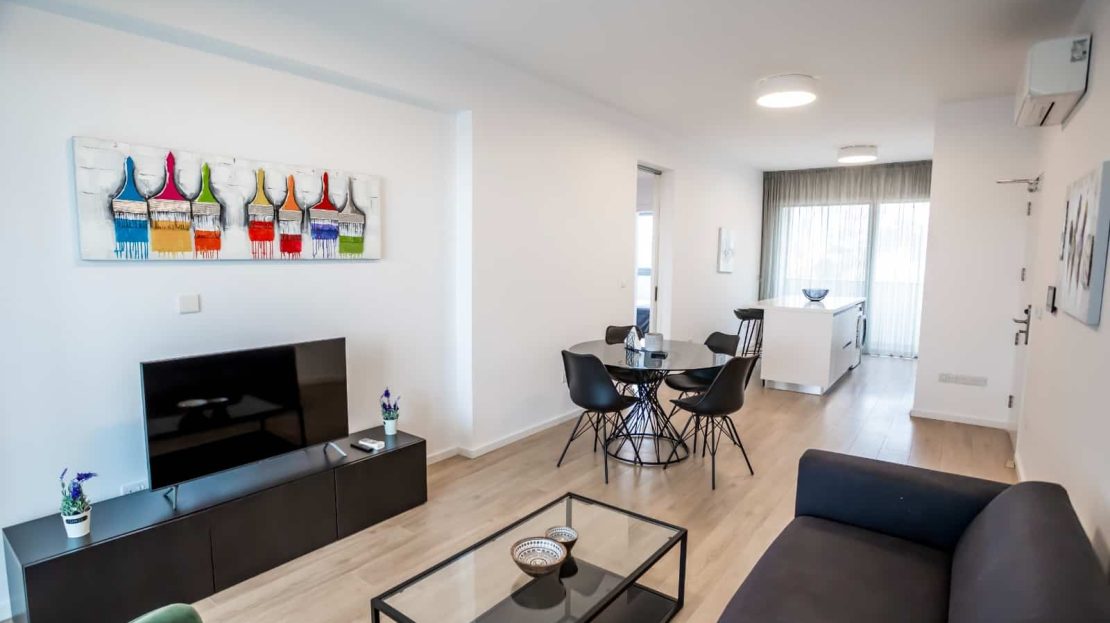 This two-bedroom apartment is situated in the bustling heart of business Limassol, Agia Zoni. This prime location ensures convenient access to various amenities, commercial centers, and the vibrant atmosphere of the city.