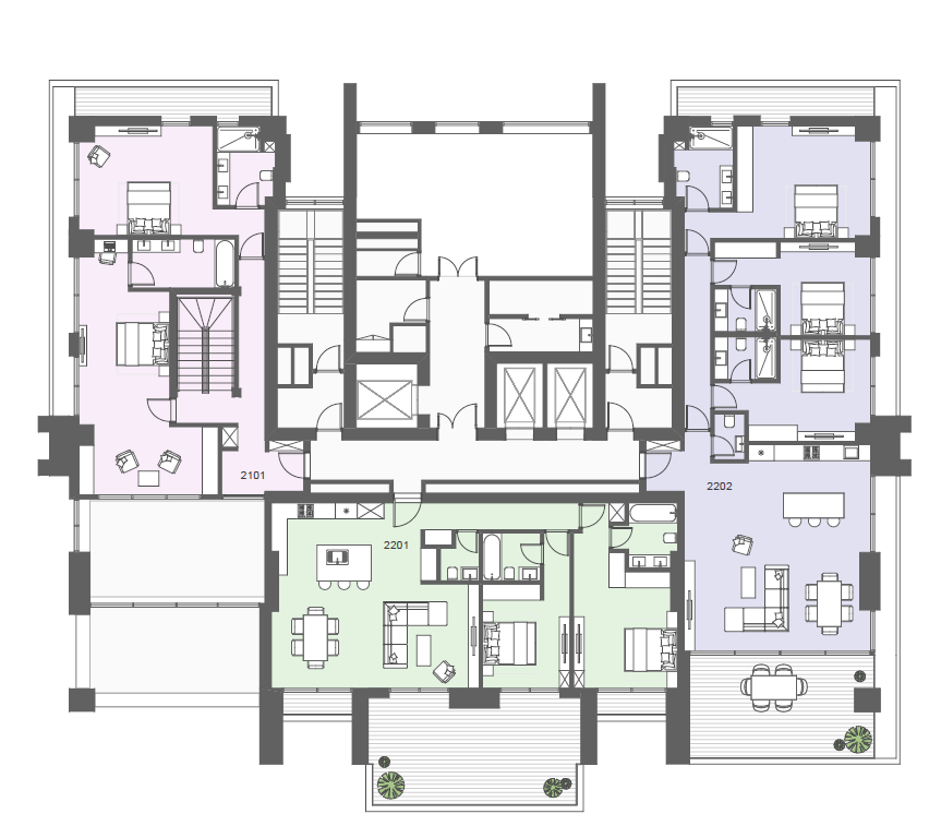 The building features a sophisticated lobby with reception and concierge services, as well as an IT room, cigar lounge, and laundry area. The complex also offers spacious outdoor amenities, such as a landscaped garden, swimming pool, and tennis court.