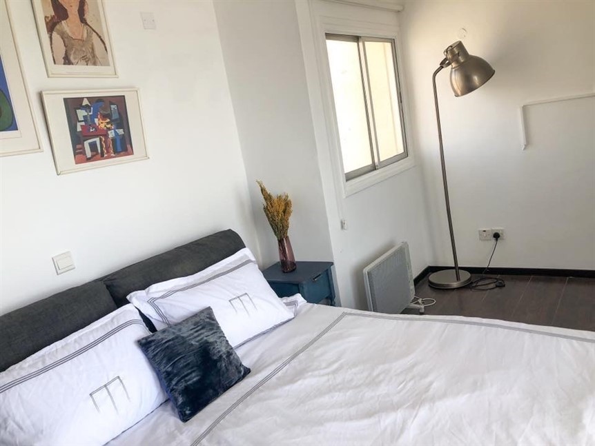 The apartment is fully furnished and comprises an open living room, dining area, and kitchen, 2 good-sized bedrooms, 1 main bathroom with shower, and a guest toilet.