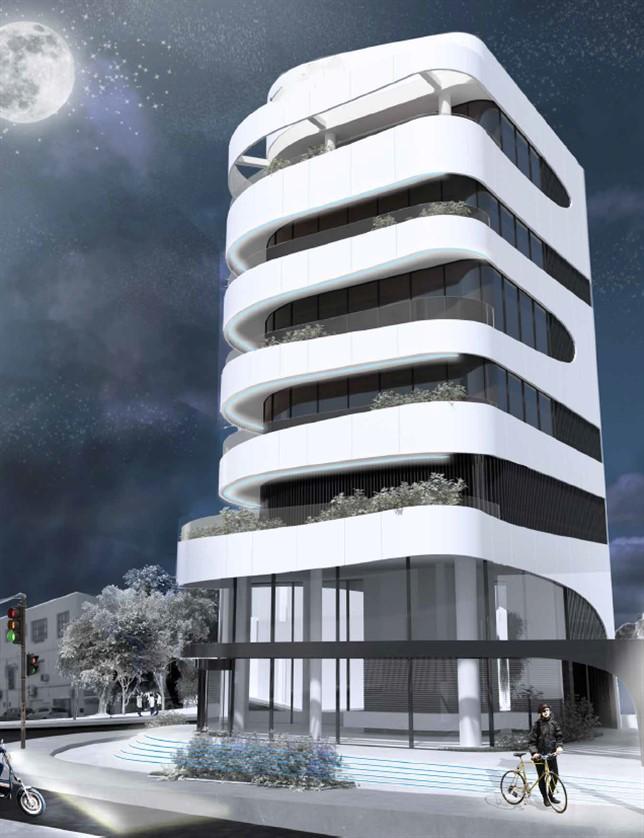 Located in one of the most commercial areas of Limassol, this eight-storey tower is built on the corner of two avenues.