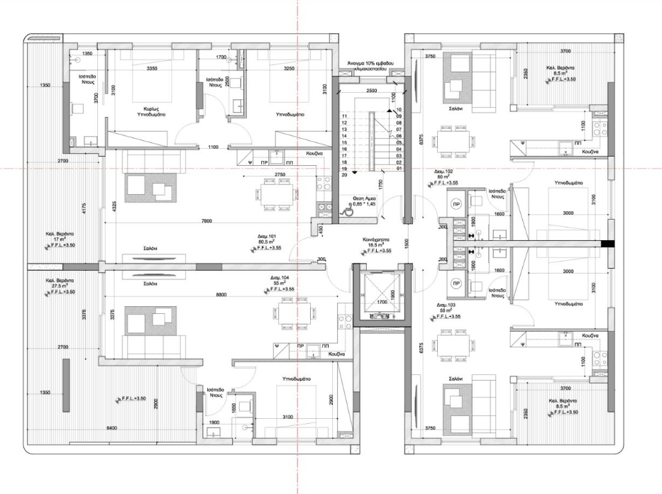 17552 Modern three-story building comprising 11 apartments in Agios Dometios, Nicosia. It ...