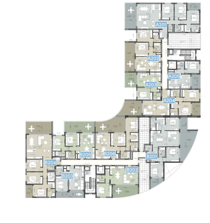 This residential complex comprises five blocks with eighty-eight luxurious apartments, ranging from compact studios to spacious one-to-four-bedroom units, and exclusive penthouses with private rooftops and pools. Each unit is designed to the highest quality standards with meticulous attention to detail, creating a truly upscale living experience.