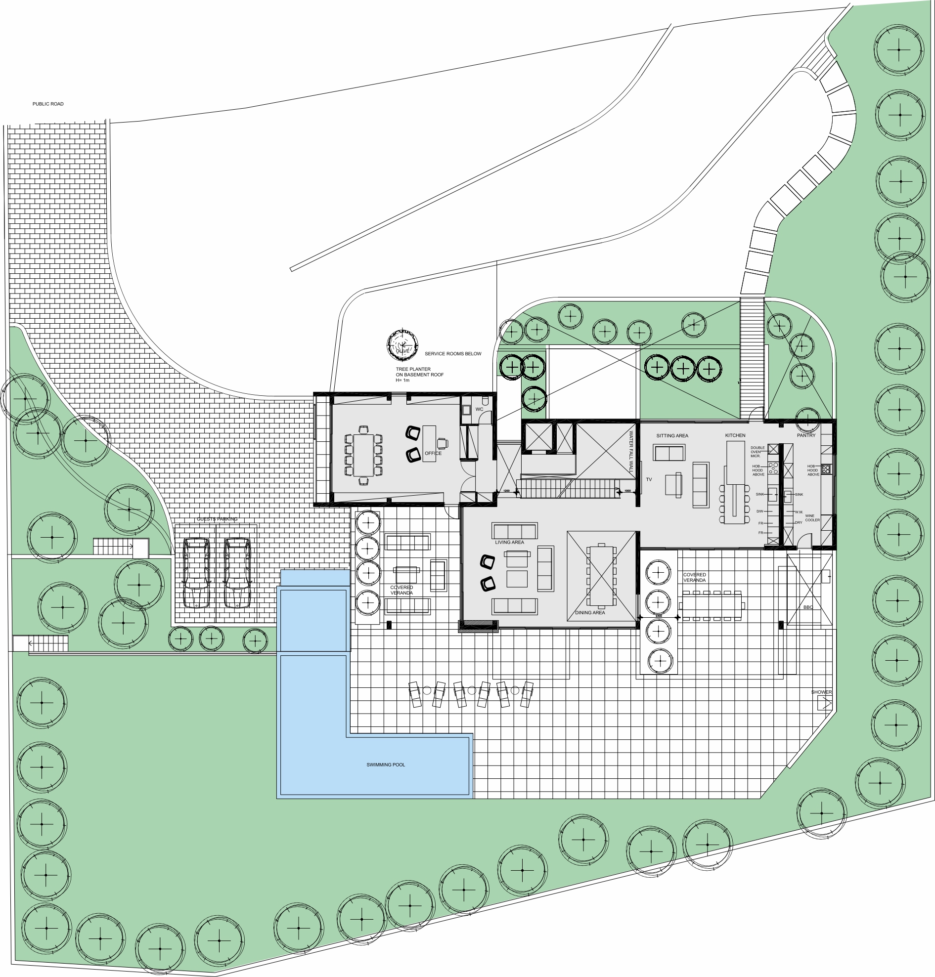 This luxury 7-bedroom villa is located in the prestigious Golf Resort area of Paphos. The villa is designed across three levels (basement, ground floor, and first floor) and features a stylish and meticulous design throughout.