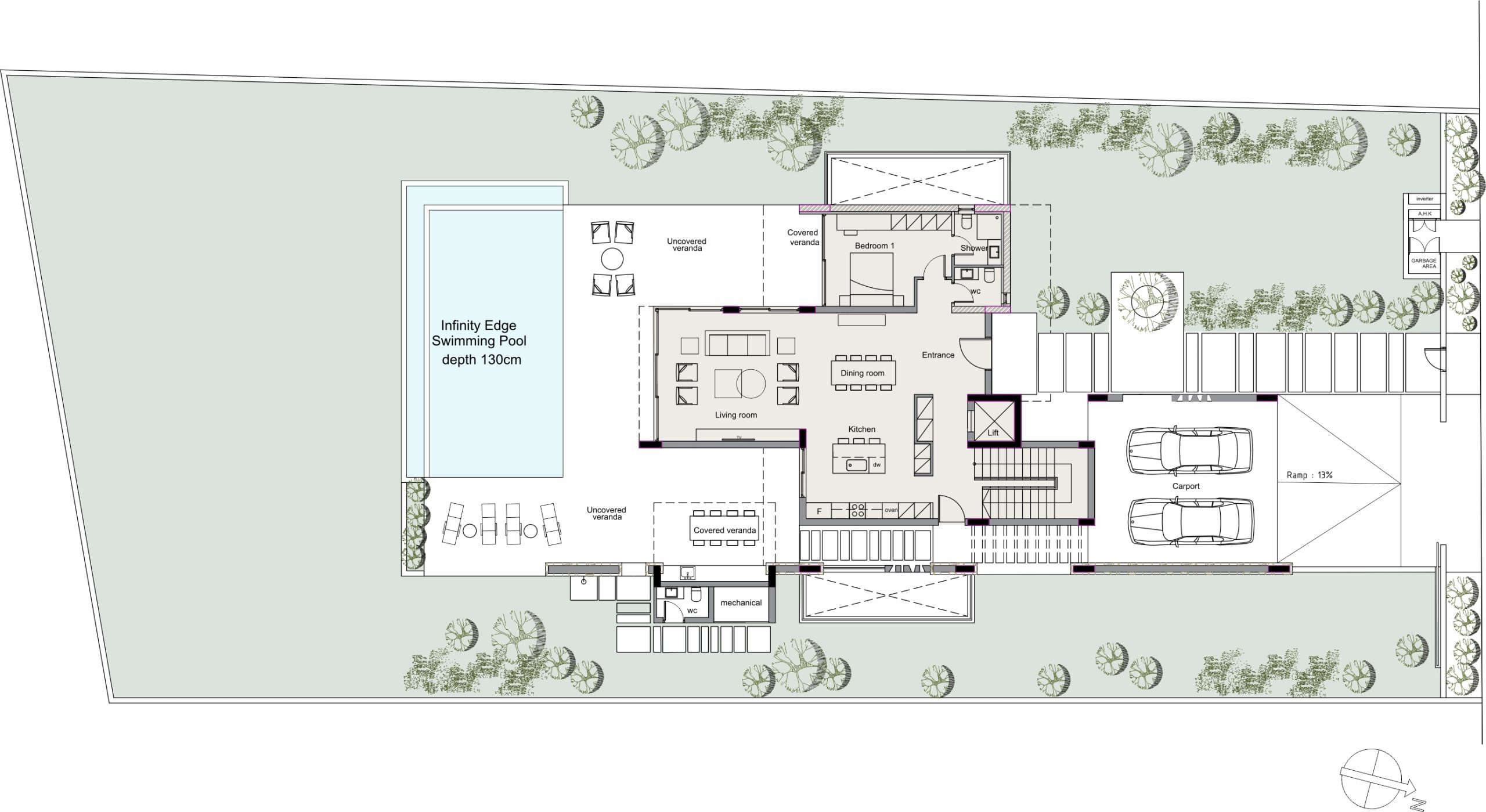 This modern 4-bedroom villa is located in Kouklia, Paphos, near the famous golf resort, set on a generous plot. The villa is designed across three levels (basement, ground floor, and first floor) and features a private swimming pool along with spacious indoor and outdoor areas. The villa enjoys stunning sea views and beautiful surrounding landscapes.