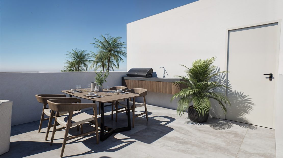 This modern project is located in the picturesque area of Kissonerga, Paphos, just 1.5 km from the beach and close to all amenities, including schools, shops, and cafés. The spacious apartment features three bedrooms, two bathrooms, an open-plan living and kitchen area, a covered veranda and a roof garden. The complex offers excellent facilities, including a communal swimming pool and a gym.