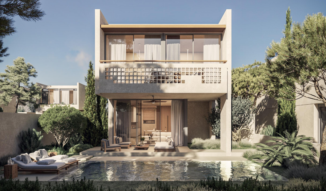 This new luxury development in Konia, Paphos, features 34 detached villas and 26 two- and three-bedroom townhouses arranged around a central green park. Situated in a prestigious hillside suburb, the project offers five contemporary design styles with high-quality finishes and modern architecture using natural materials and lush landscaping.