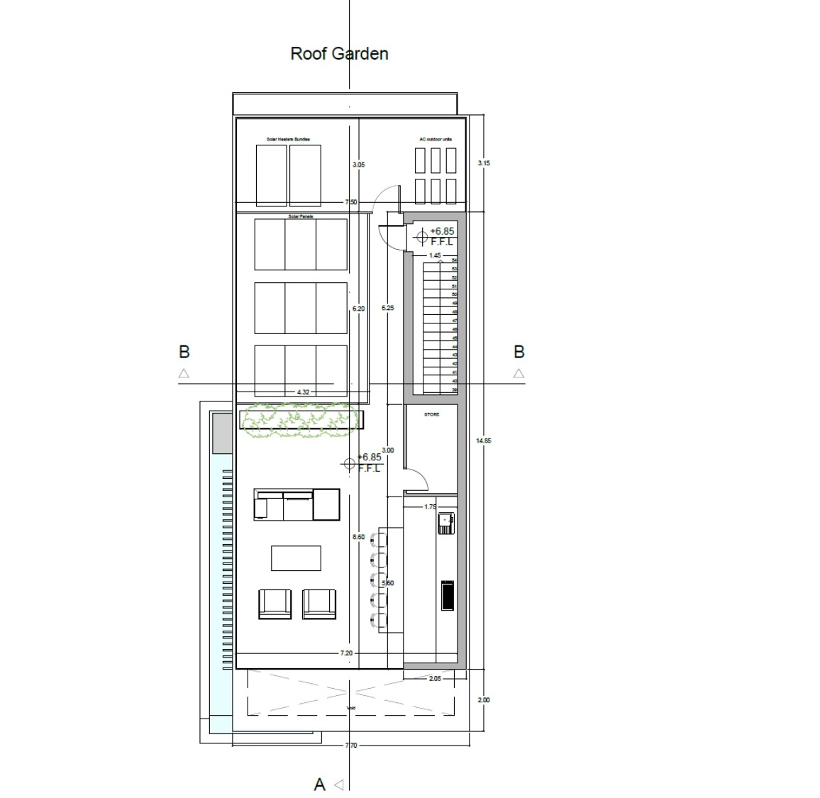 The villa features 4 bedrooms, 4 bathrooms, a guest toilet, a basement, ground floor, and first floor, as well as a chic roof garden. Outside, there is a private swimming pool.