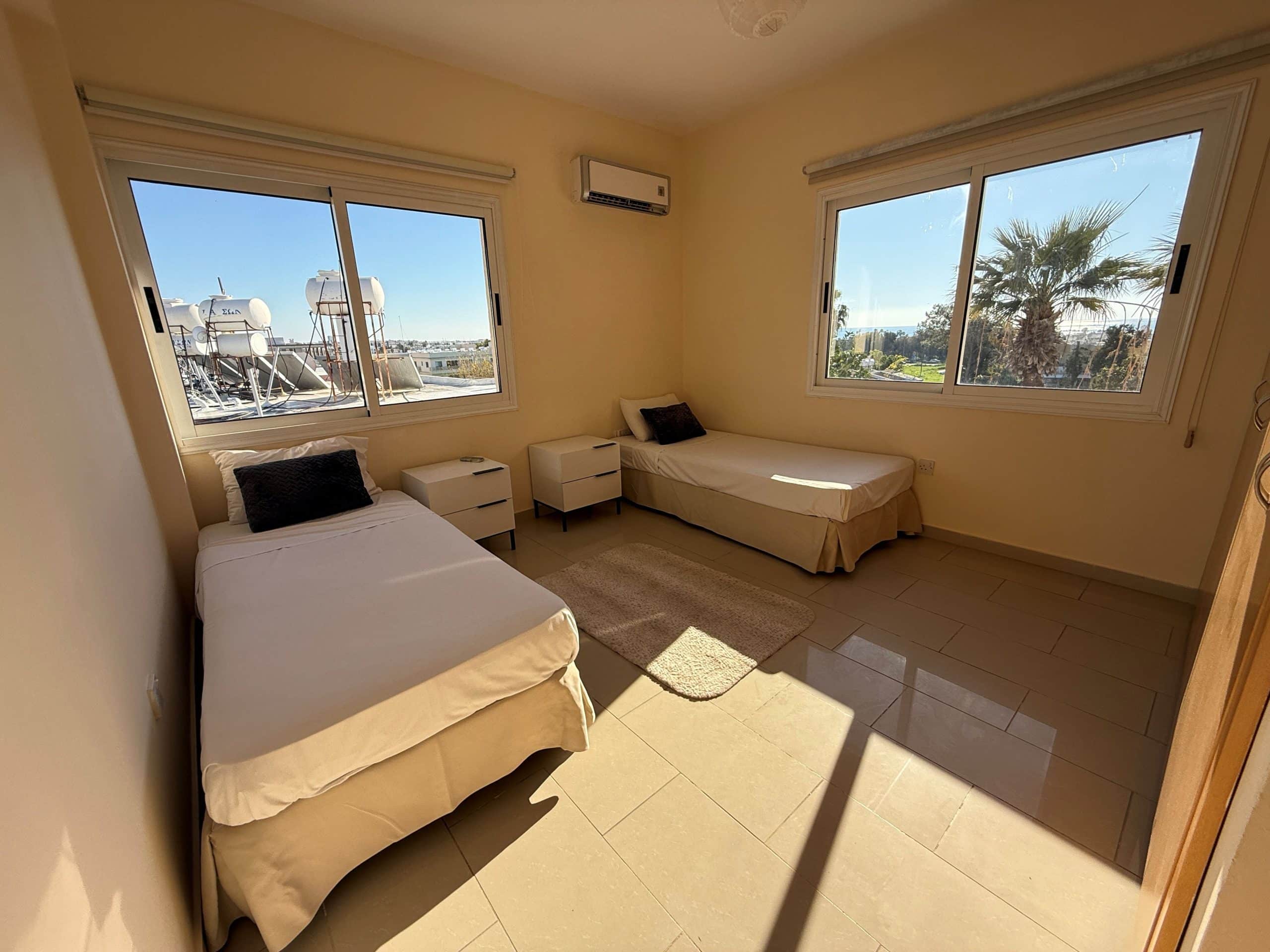 This three-bedroom apartment is centrally located in the Tombs of the Kings area of Paphos, within walking distance of shopping centers, restaurants, pubs, bars, banks, and the picturesque Paphos Harbour. It is only 300 meters from the beach.