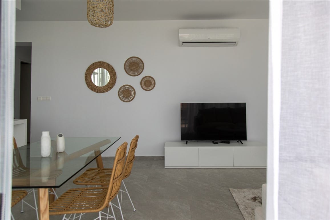 This modern, luxurious and fully furnished two-bedroom apartment is located in n a quiet neighborhood in the heart of the coastal town, Paphos only 1 km away from the beach and within walking distance from various services and amenities, such as cafes, beach bars and restaurants with easy access to schools, hospitals, and supermarkets.